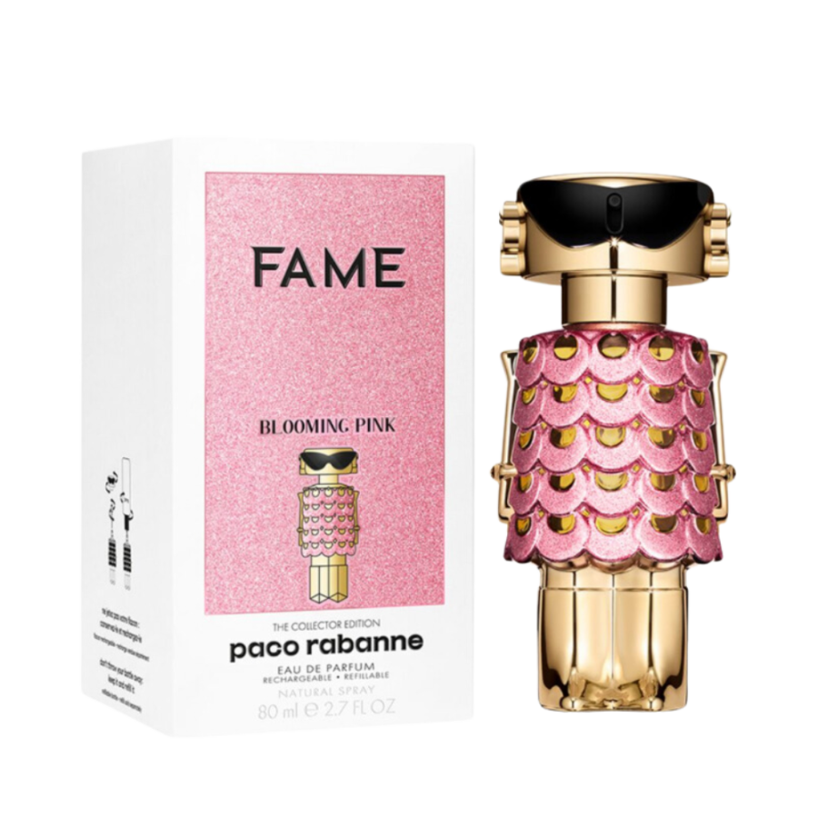 Descrição: Fame Blooming Pink Eau de Parfum Feminino da Paco Rabanne é uma fragrância vibrante e ousada, projetada para mulheres que querem brilhar e destacar-se com feminilidade e confiança. Inspirada no glamour moderno e na energia da moda, esta versão traz uma interpretação floral e fresca da icônica linha Fame. Com sua combinação de notas frescas e florais, Fame Blooming Pink é ideal para mulheres que desejam exalar charme e estilo em todas as ocasiões.